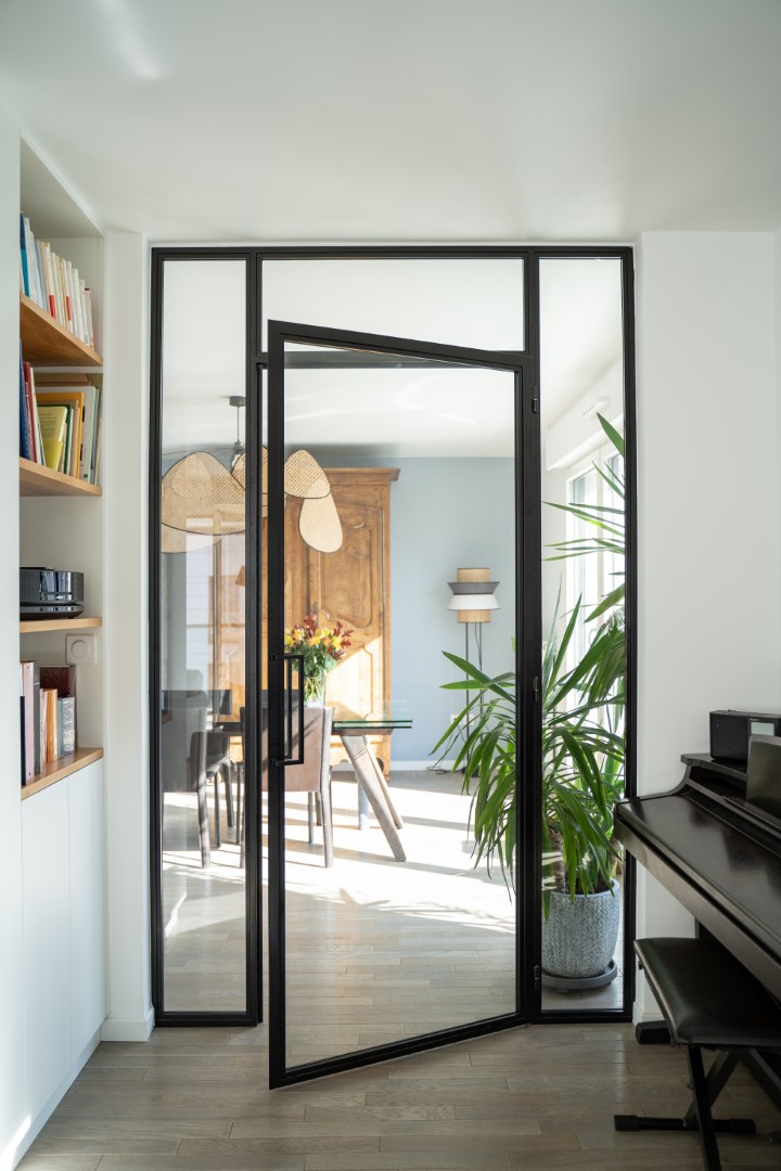 Particulier Nous avons connu Scènes en Couleurs sur recommandation et nous sommes très contents. L’aménagement de notre entrée et de notre salon a été particulièrement bien conçu avec notamment la création d’un meuble encastré sur mesure délimitant les espaces tout en laissant passer la lumière.
