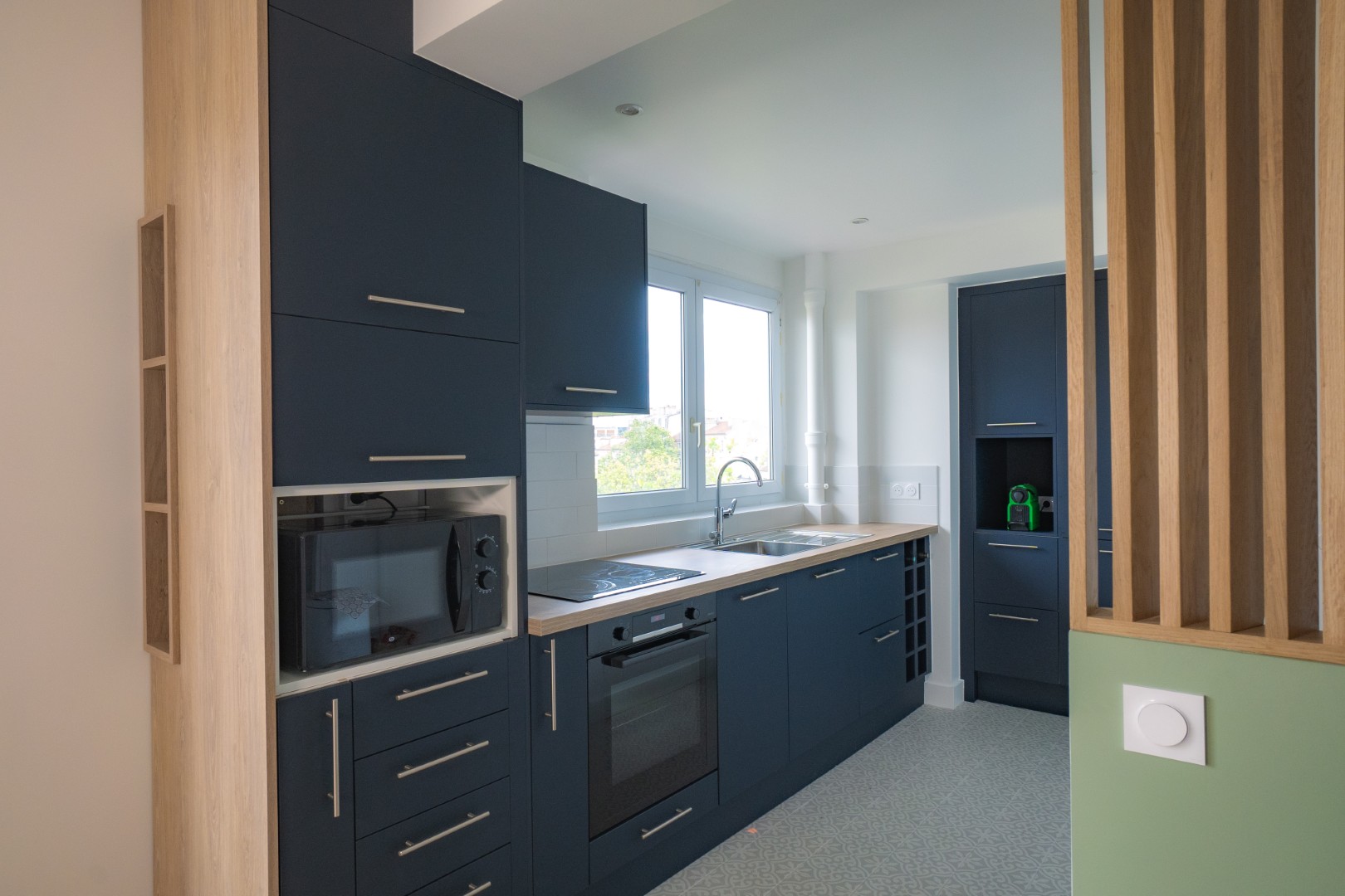 Particulier Nous avons acheté un petit appartement pour loger notre fille étudiante. Cet appartement avait besoin d’être complètement rafraîchi. Nous sommes très satisfaits des prestations apportées par Scènes en Couleurs : outre un très bon suivi de chantier, Scènes en Couleurs nous a apporté d’excellents conseils de réagencement de l’appartement ; le plan a été complètement repensé, ce qui a permis de créer des pièces supplémentaires.