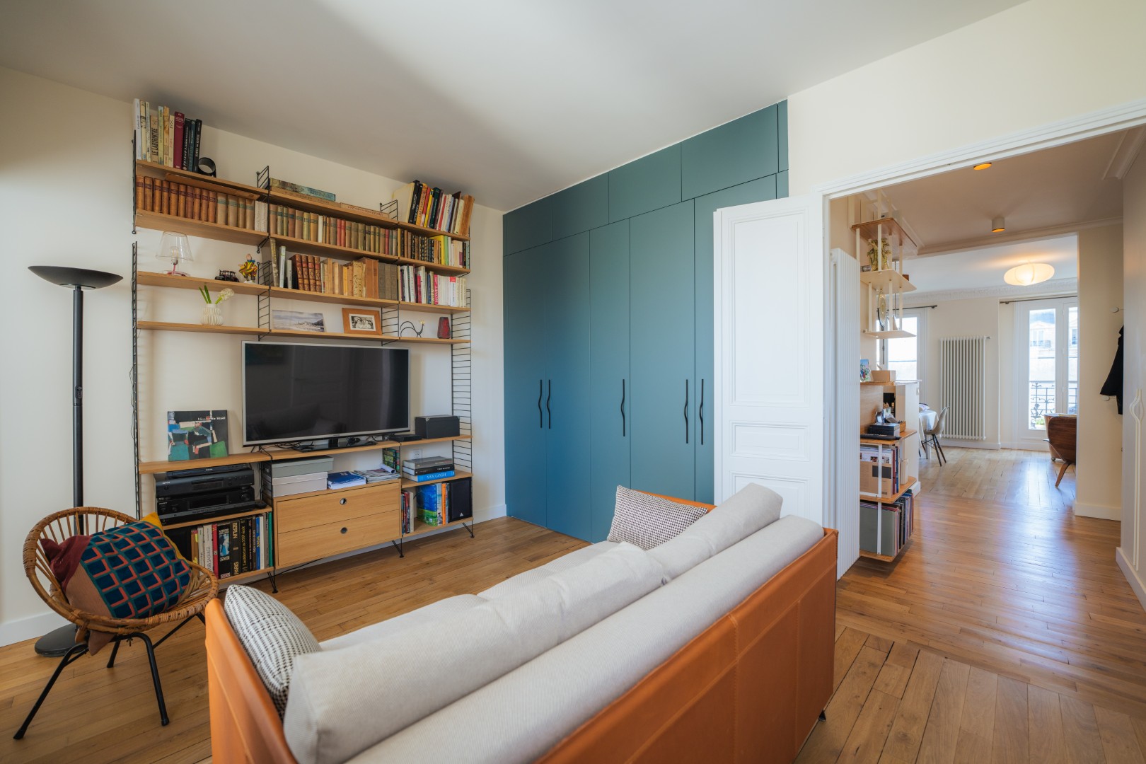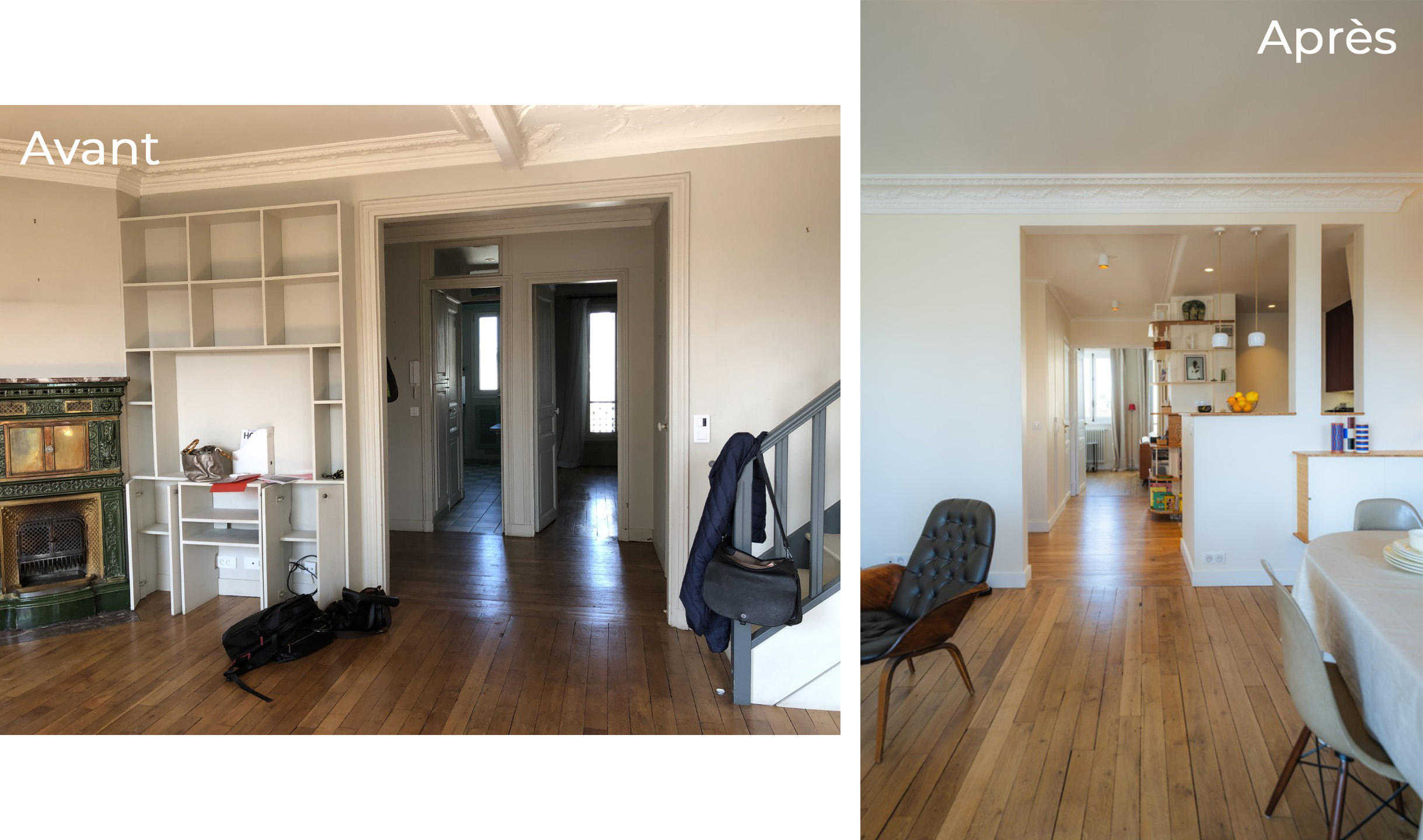 Nous avons totalement transformé un duplex, initialement sombre et cloisonné, en un espace traversant baigné de lumière naturelle.